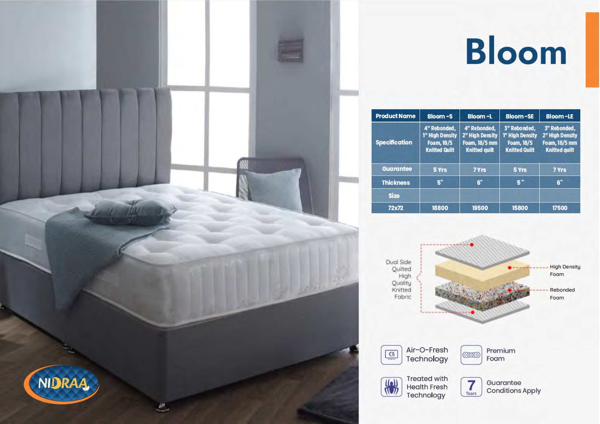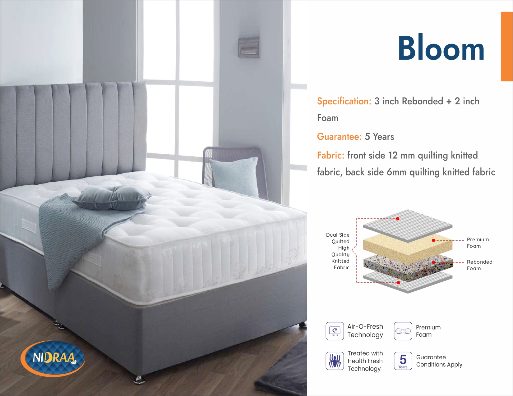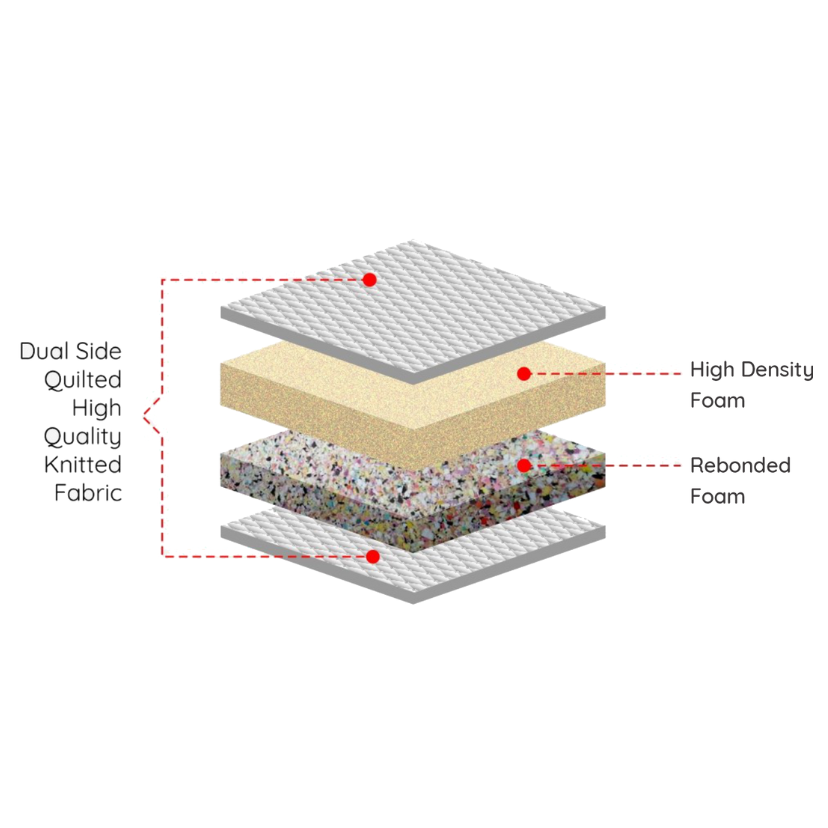 Our Bliss mattress is designed with a multi-layer construction that combines hard foam, high-density foam, and rebonded foam for balanced support and comfort. It’s ideal for long-term durability and healthy sleep posture.